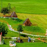 Hotel Glamping Vrhovc Zelezniki está situada a 7 km del Hospital Partisano Franja y ofrece zona de pícnic, instalaciones de barbacoa y un jardín para el ocio de los huéspedes. El camping incluye un aparcamiento y una terraza con vistas a las montañas.